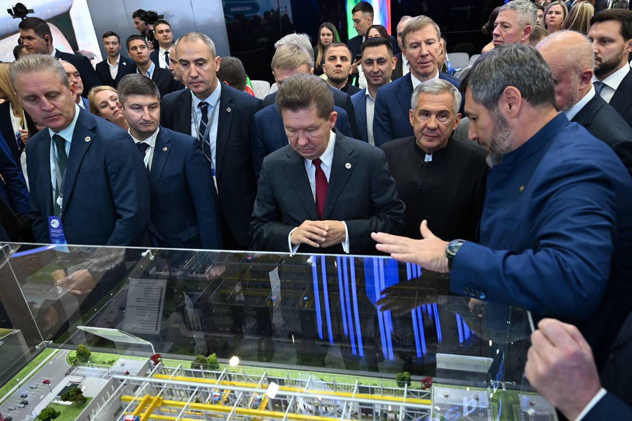 在鞑靼斯坦共和国的展台上,鲁斯塔姆-明尼哈诺夫(Rustam Minnikhanov)介绍了新的 “Ammoni 2 ”合成氨和尿素生产综合体的实施情况。鲁斯塔姆-明尼哈诺夫向俄罗斯天然气工业股份公司管理委员会主席阿列克谢-米勒介绍了鞑靼斯坦的产品。